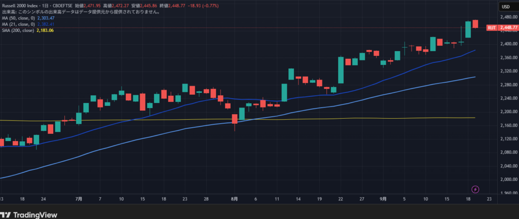 ダウ工業株30種平均: ダウ平均は会談後、0.5%下落するなど、他の指数とは異なる動きを見せました 。これは、ダウがより伝統的な製造業や消費財企業を多く含むため、貿易戦争の潜在的な影響をより強く意識した結果かもしれません。